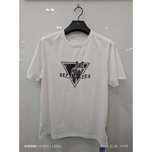 主题: 倒三角狼头印花净色短袖圆领T恤