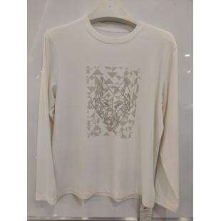 产品类别: 莫代尔棉净色局部印花长袖T恤