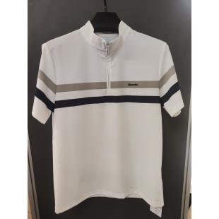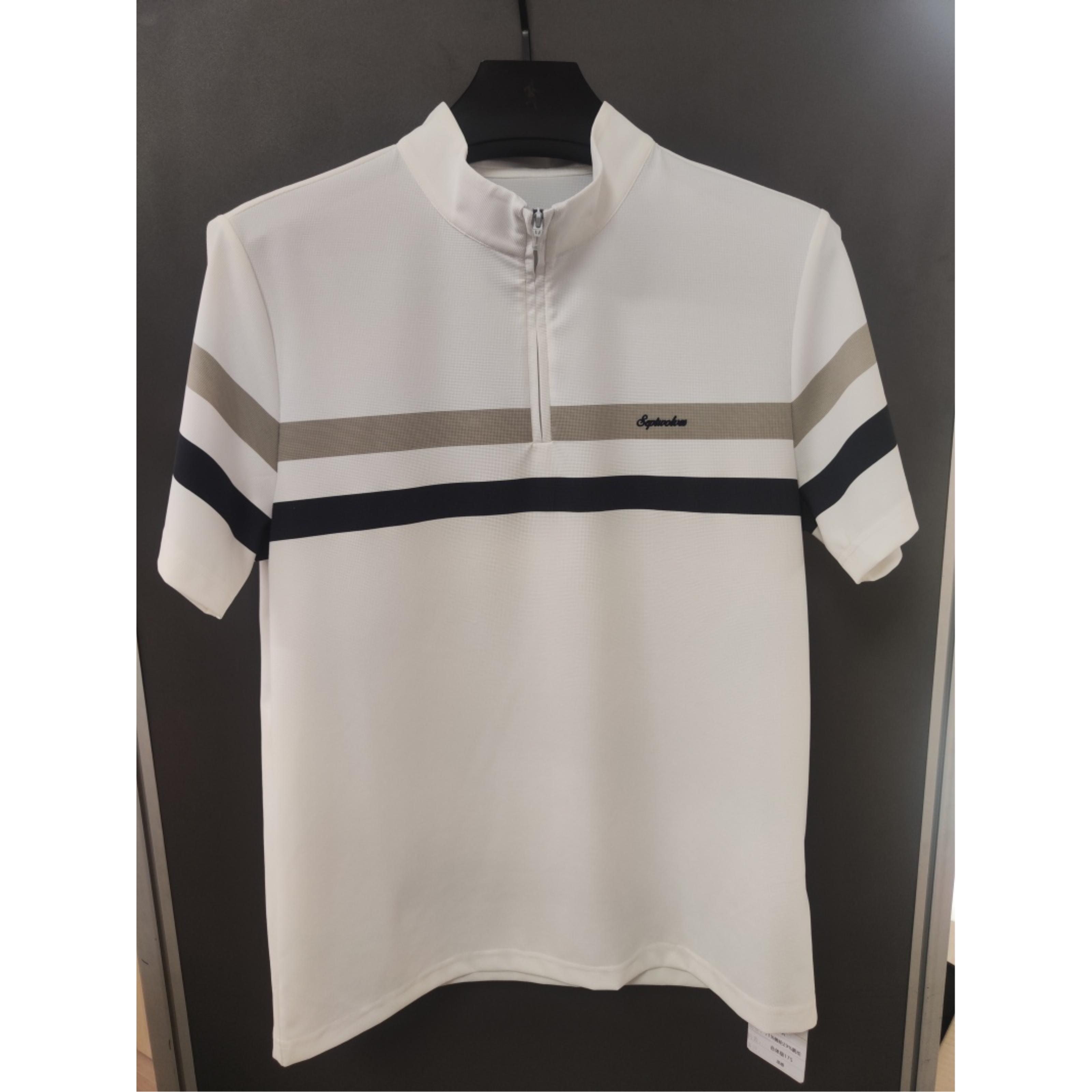产品类别:凉感锦氨条纹印花小立领短袖T恤