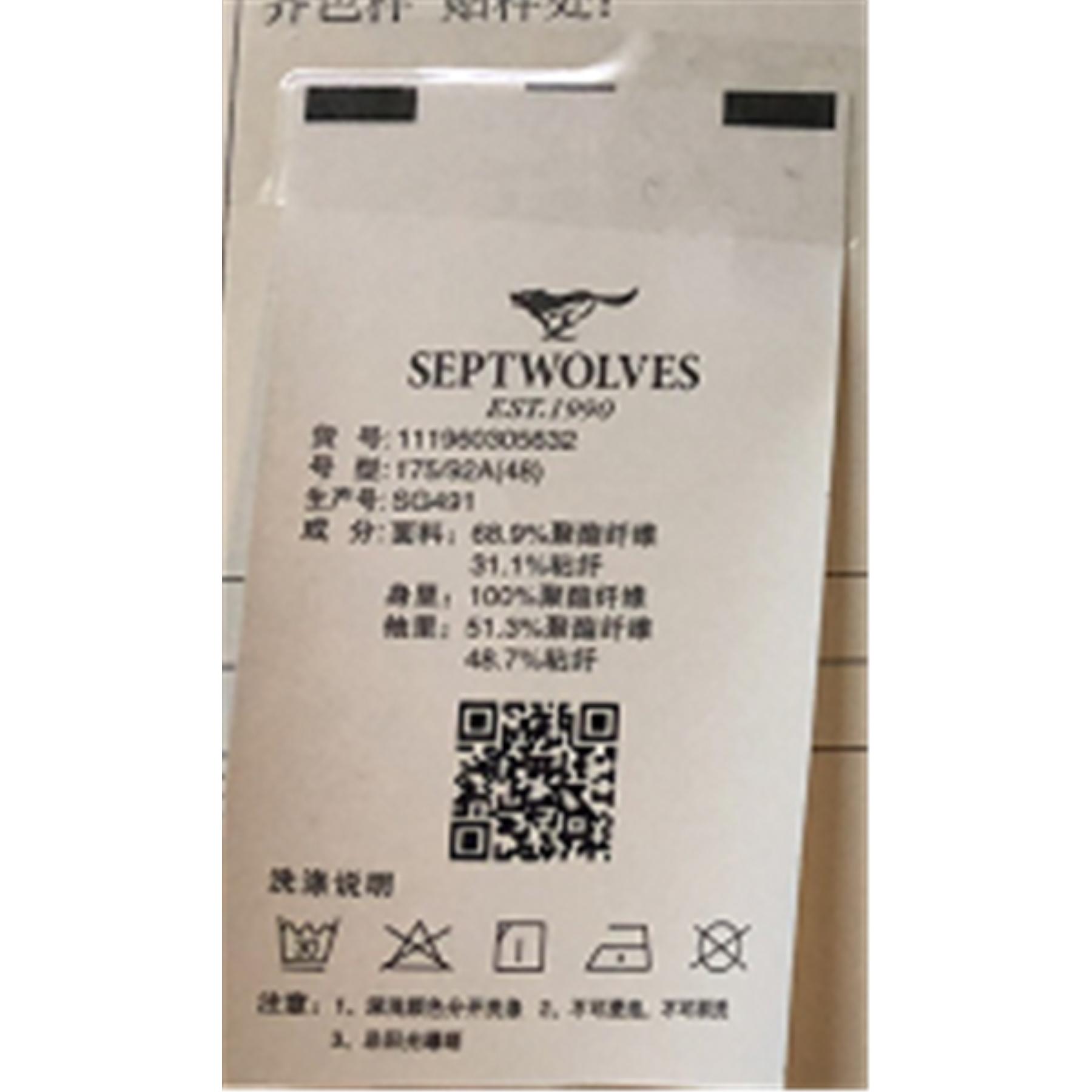 产品类别:西装类洗水唛