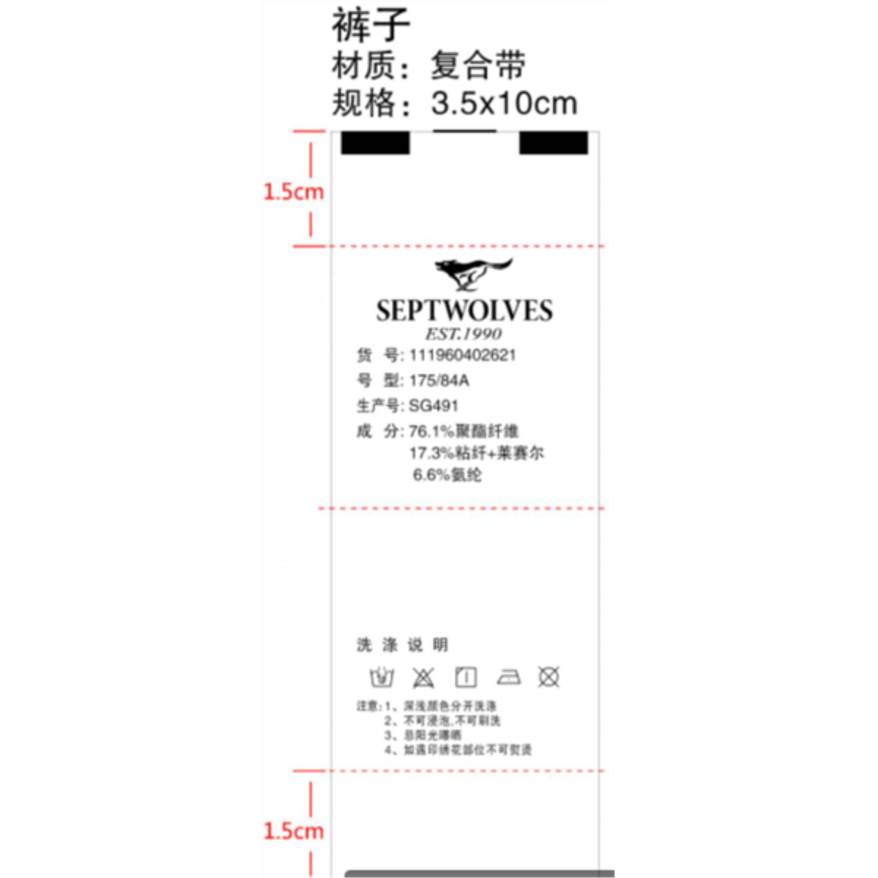 产品类别:裤子类洗水唛