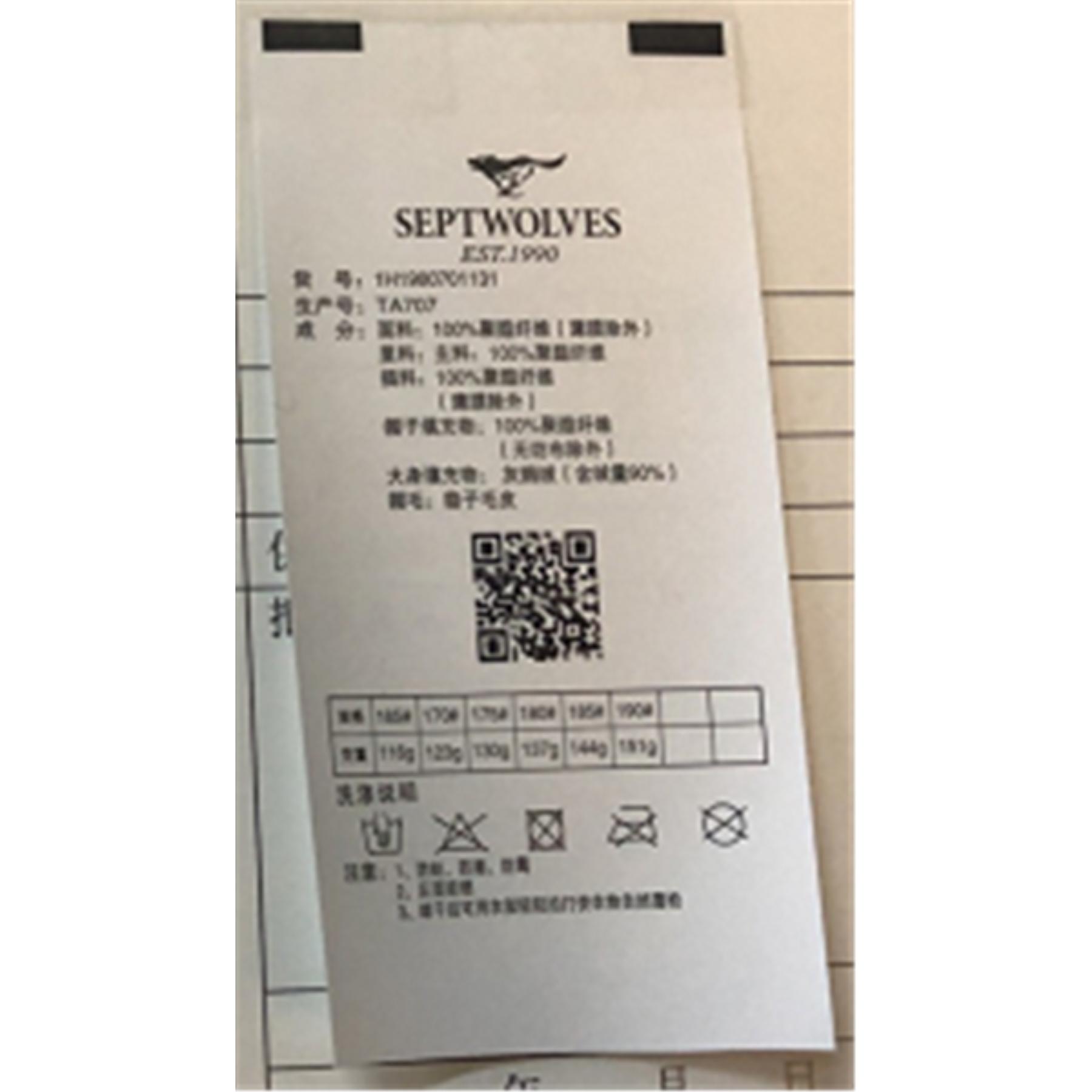 产品类别:羽绒服洗水唛